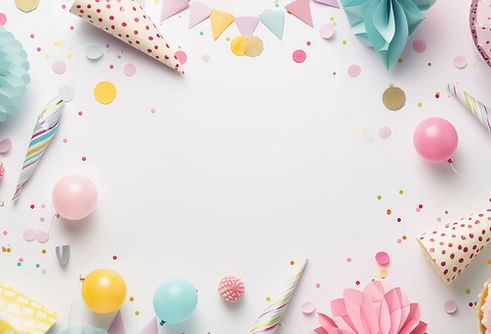 Rainbow birthday decorations and party music inside Art House Studios - celebrate in air-conditioned comfort.
